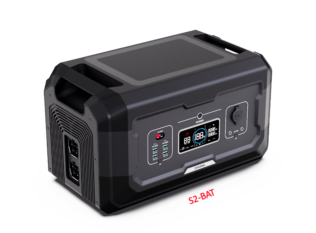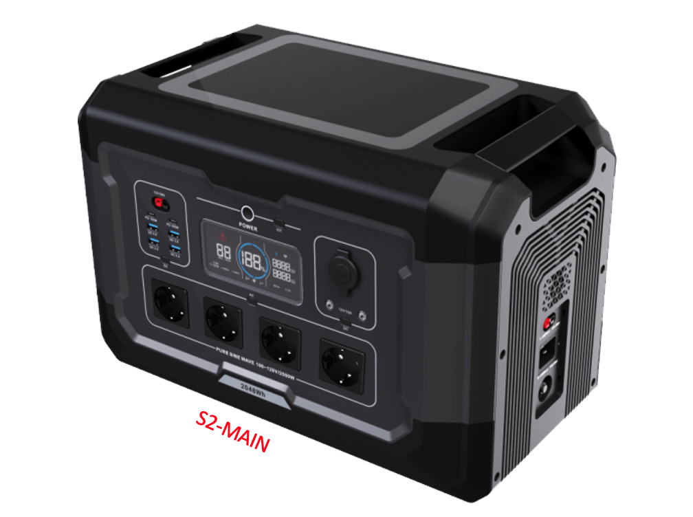 De eerste versie die beschikbaar is, is onze S2-MAIN met een AC uitgangsvermogen van 2.500W en 2.048Wh opslagcapaciteit. Via de module S2-BAT kan de opslagcapaciteit (in combinatie met S2-MAIN) uitgebreid worden per 2.048Wh. Tot 15 x S2-BAT kunnen aan een S2-MAIN gekoppeld worden. Let op! Toevoegen van S2-BAT modules verhoogt enkel de opslagcapaciteit en niet het AC-vermogen, dit blijft 2.500W.