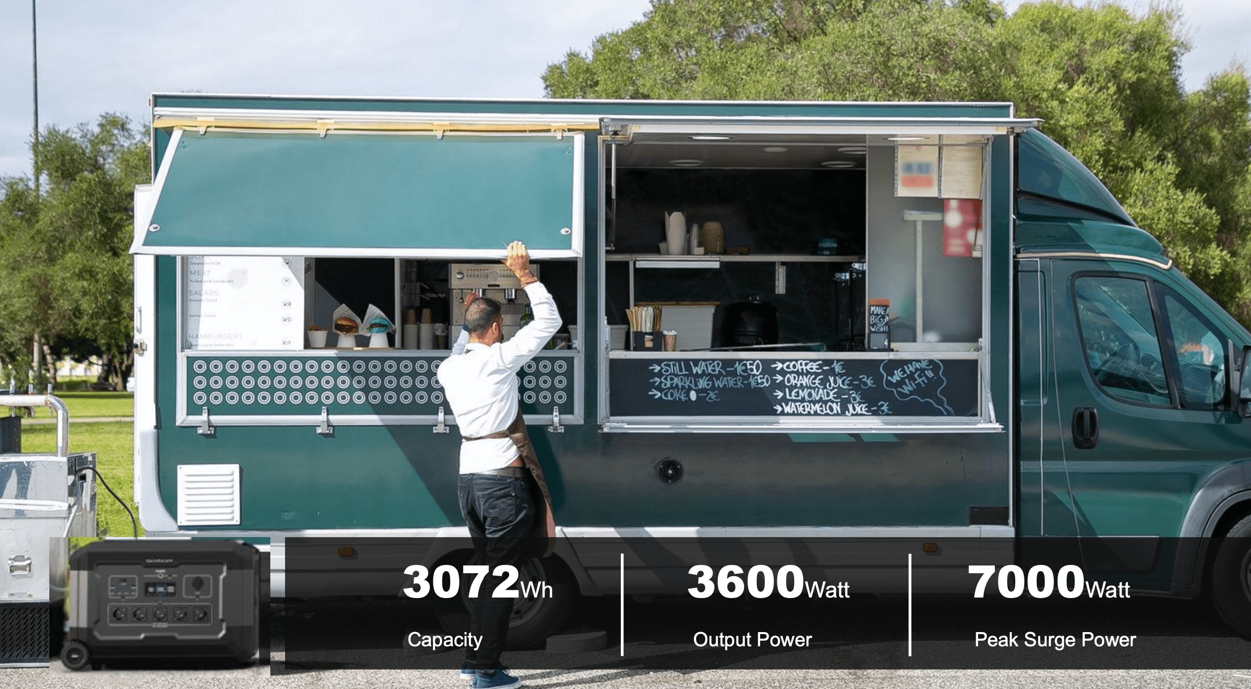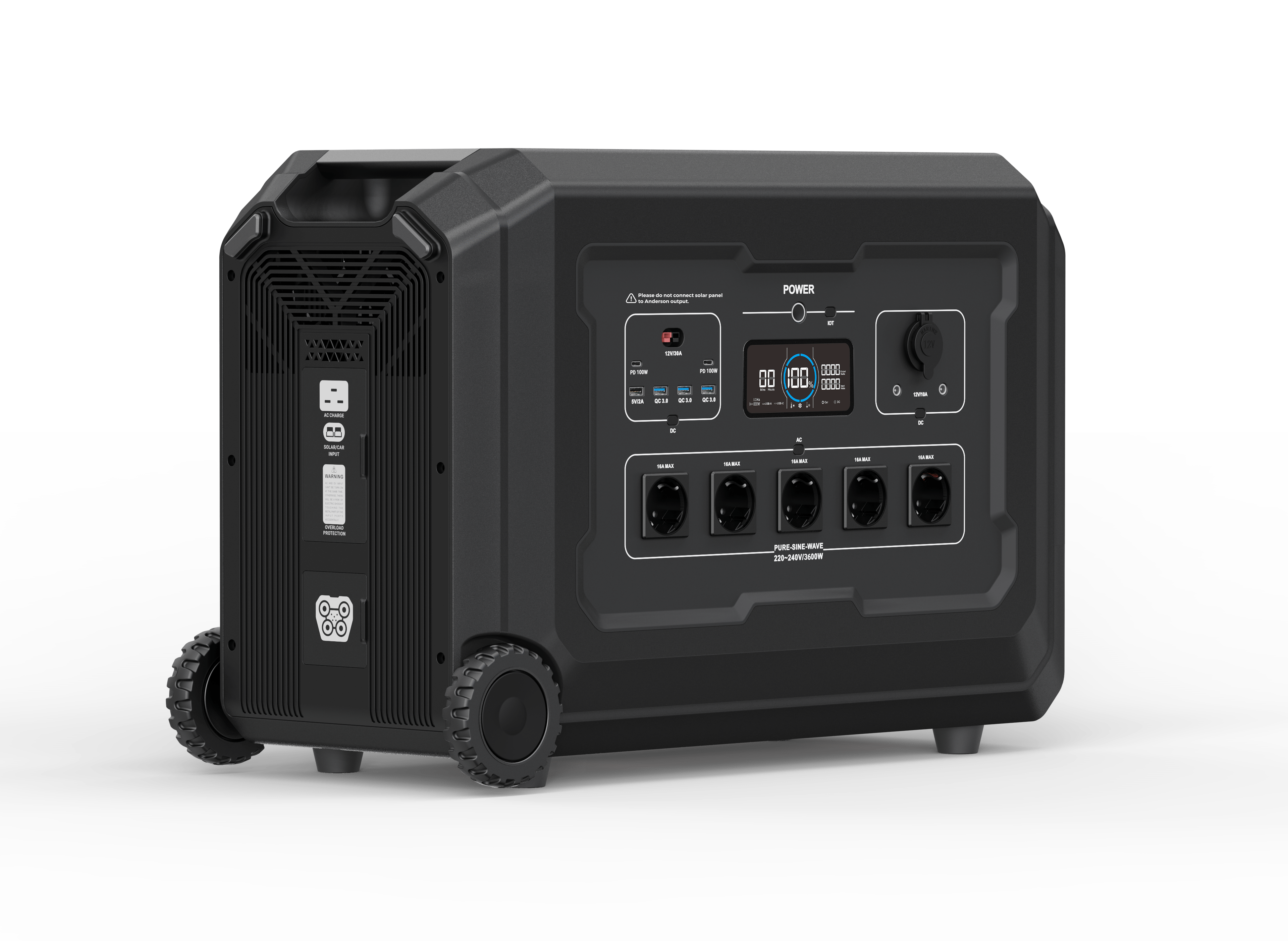 - Outputs : USB-A / USB-C / 12Vdc / 230Vac (3.600W).