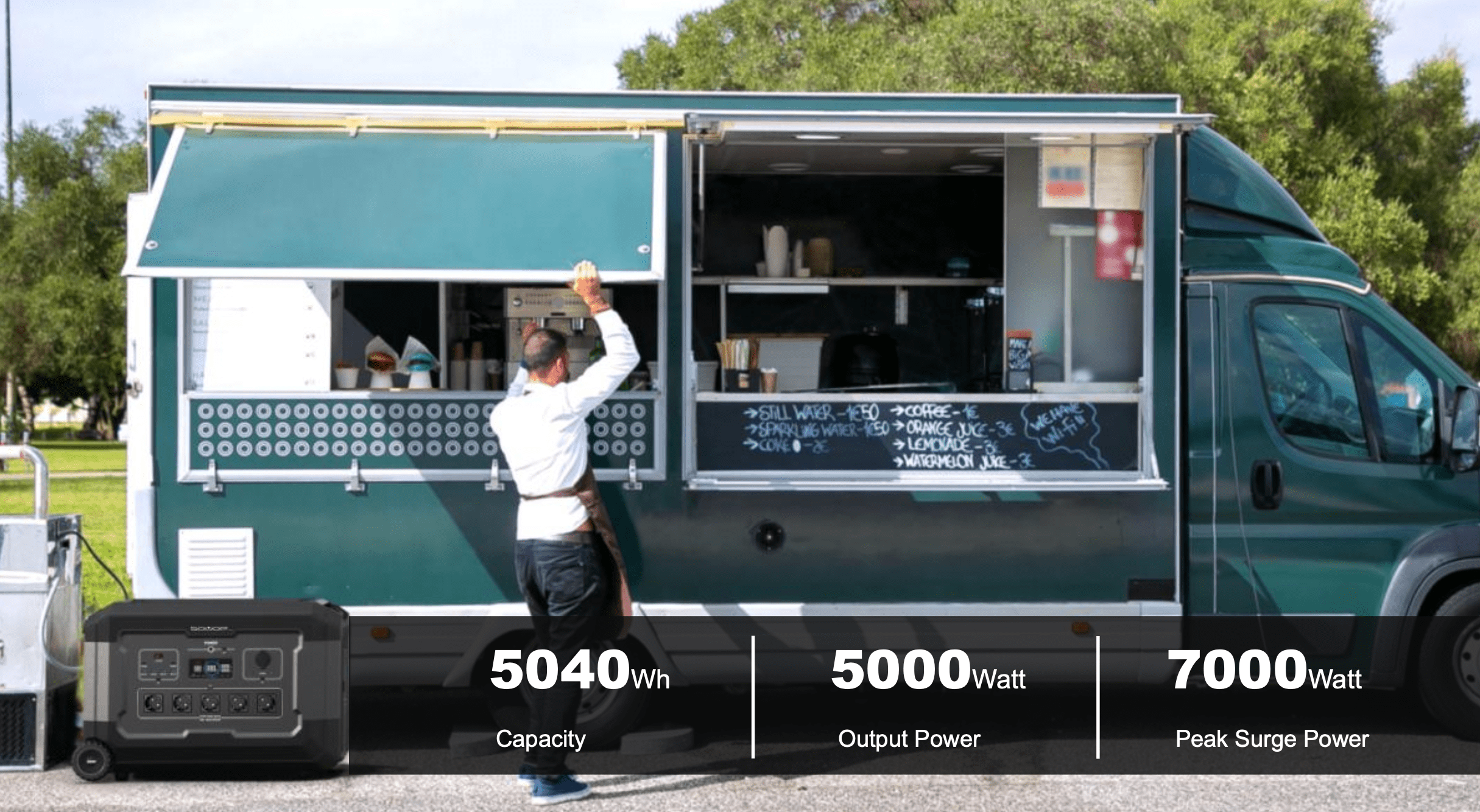- Outputs : USB-A / USB-C / 12Vdc / 230Vac (5.000W).