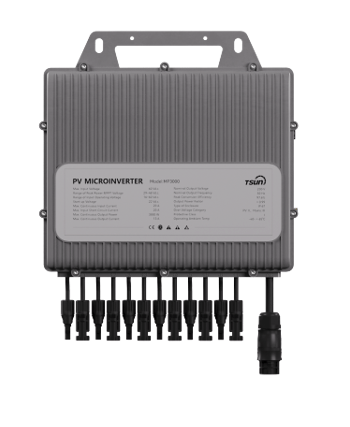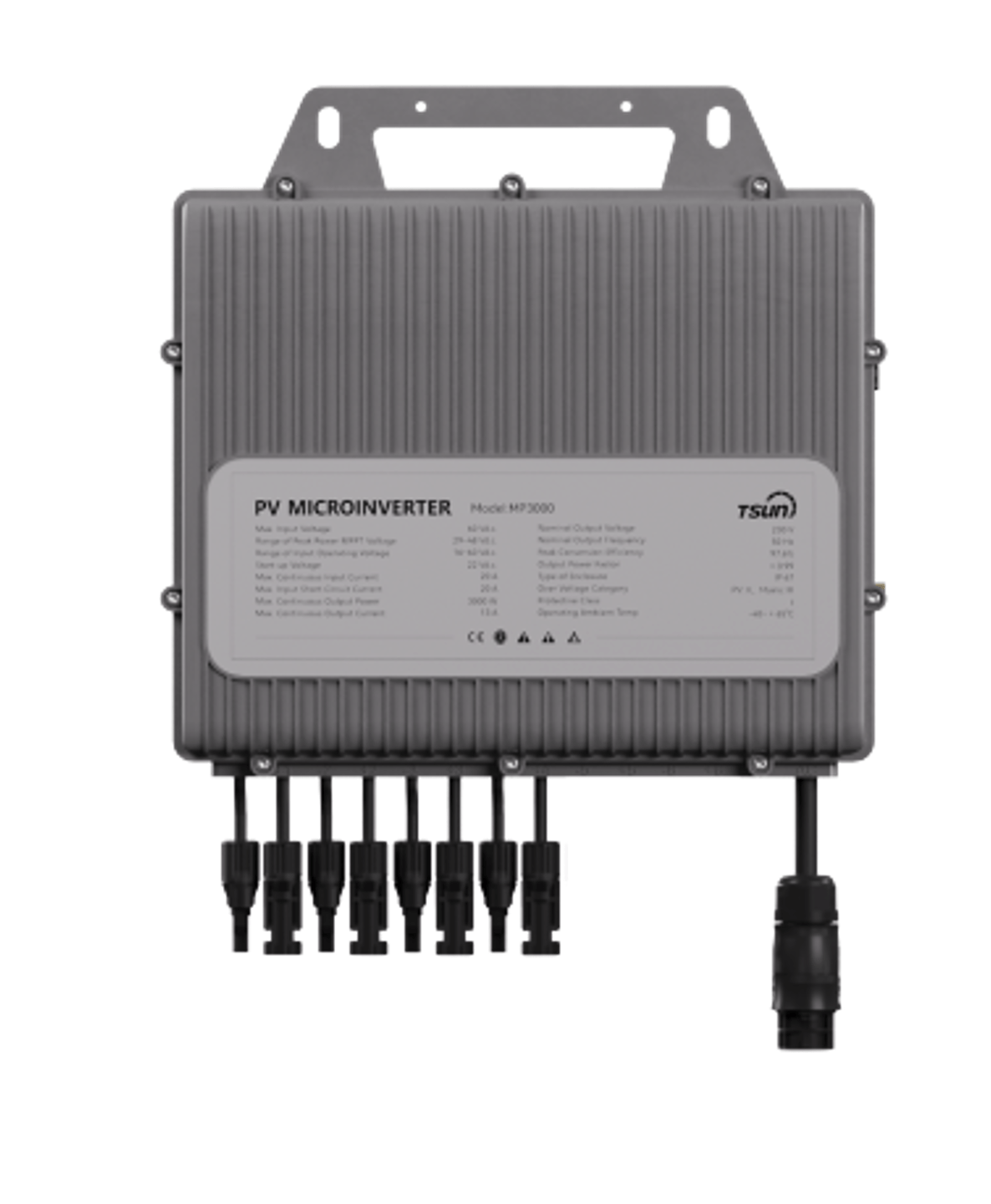 - Lage DC spanningen (max. 60V) tezamen met geïntegreerde "anti-eiland" beveiliging garanderen een hoge VEILIGHEID